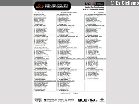 Es CiclismoAyer a las 17:47Listado oficial de ciclistas inscritas en la Setmana Ciclista Valenciana 2026... Leer más en Es Ciclismo