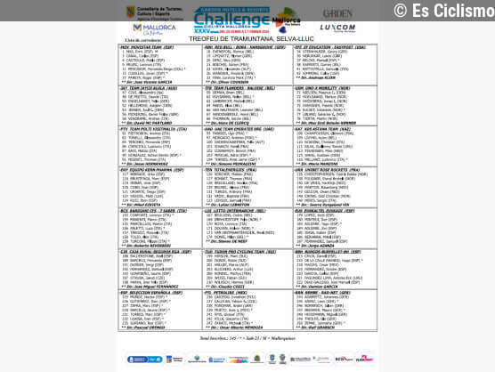 Es CiclismoHoy a las 10:17Challenge de Mallorca: Listado oficial de ciclistas inscritos en el Trofeo Serra de Tramuntana 2026... Leer más en Es Ciclismo
