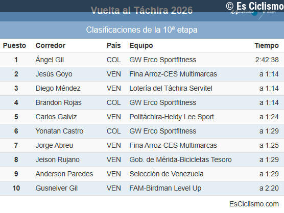 Es Ciclismo18/01/2026 18:02Jorge Abreu conquista la Vuelta al Táchira 2026 tras una vibrante última etapa en San CristÃ�... Leer más en Es Ciclismo