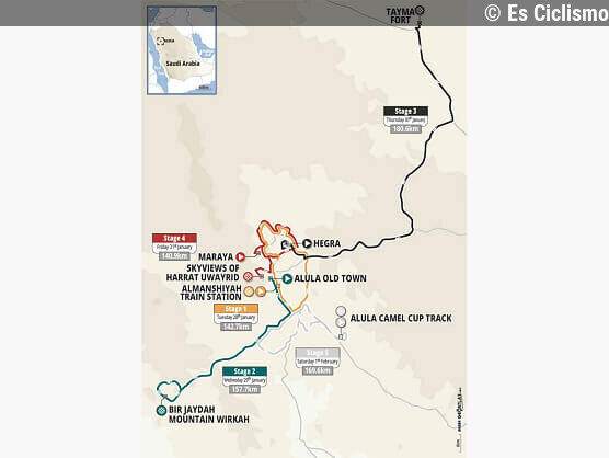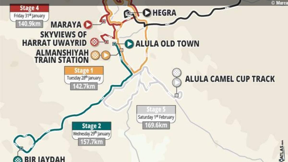 Es Ciclismo07/01/2026 10:46El AlUla Tour presenta su recorrido y espera un duelo entre Milan y Merlier [Etapas y perfiles]... Leer más en Es Ciclismo