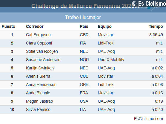 Es Ciclismo25/01/2026 14:47Challenge de Mallorca: Cat Ferguson impone su velocidad en Llucmajor y da la victoria al Movistar... Leer más en Es Ciclismo